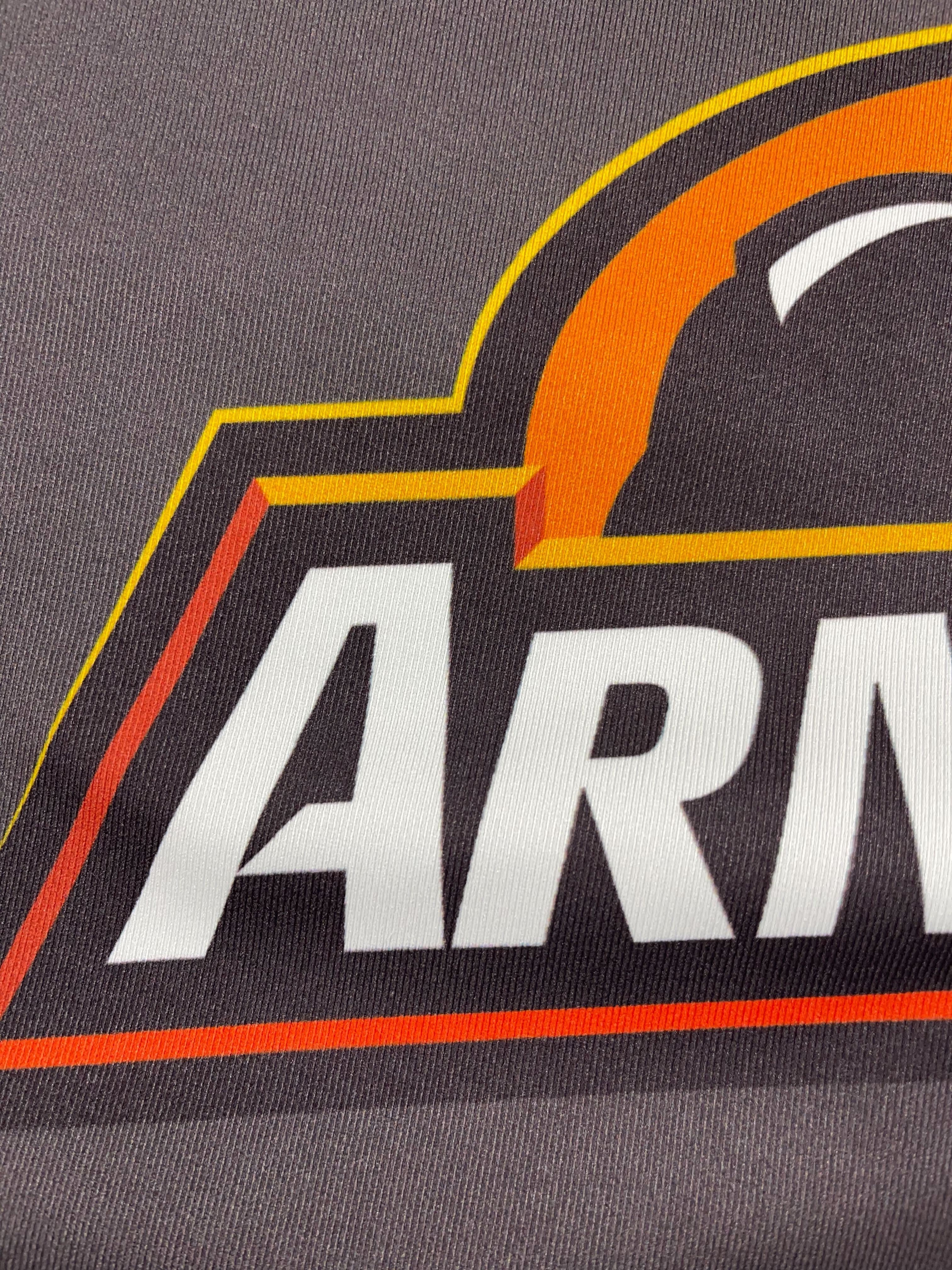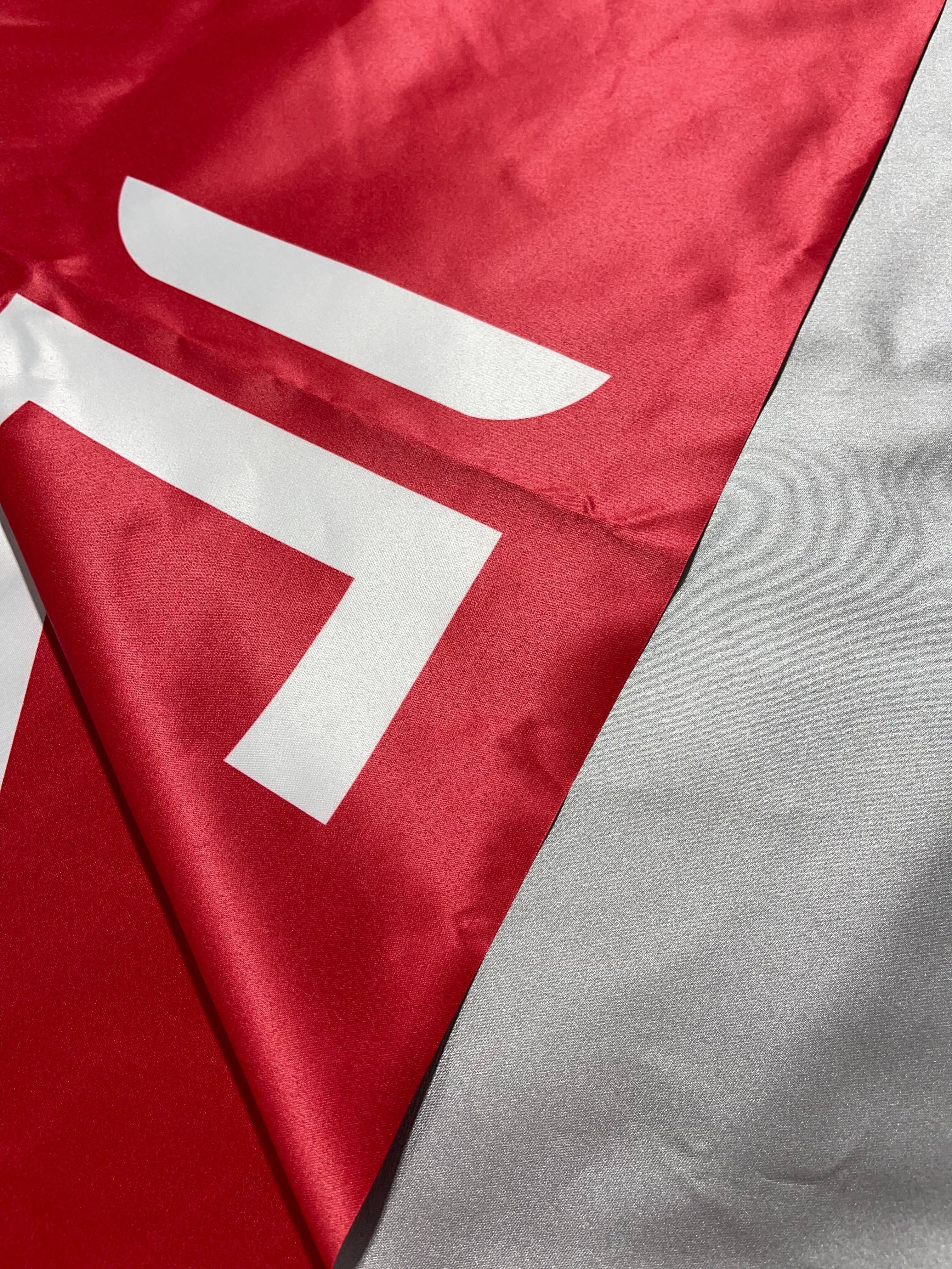 Given the thicker nature of this material and the impracticality of silk screening for smaller orders, we've perfected a printing method known as heat transfer. This technique allows us to apply and transfer designs onto the fabric, achieving a colour match of 98% between the front and back of the material.