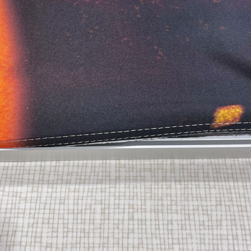 Our SEG fabric is custom-printed and finished with a thin silicone strip that easily slides into the frame’s channel, creating a taut, wrinkle-free display. This innovative system not only makes installation quick and easy but also allows for simple graphic changes, making it a cost-effective solution for dynamic branding.