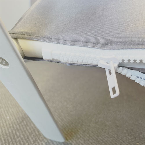 The design graphic easily fits over the frame, stretching snugly and locking in place with a concealed zipper at the base. After its purpose is served, it can be swiftly dismantled and stored in the provided carrying pouch.