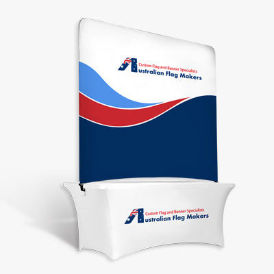 You also have the opportunity to choose the right banner for your needs. The basic table top display is the smallest, allowing you to use the table for business cards and other materials. The backwall display is definitely the most eye-catching, as the entire table becomes the banner.